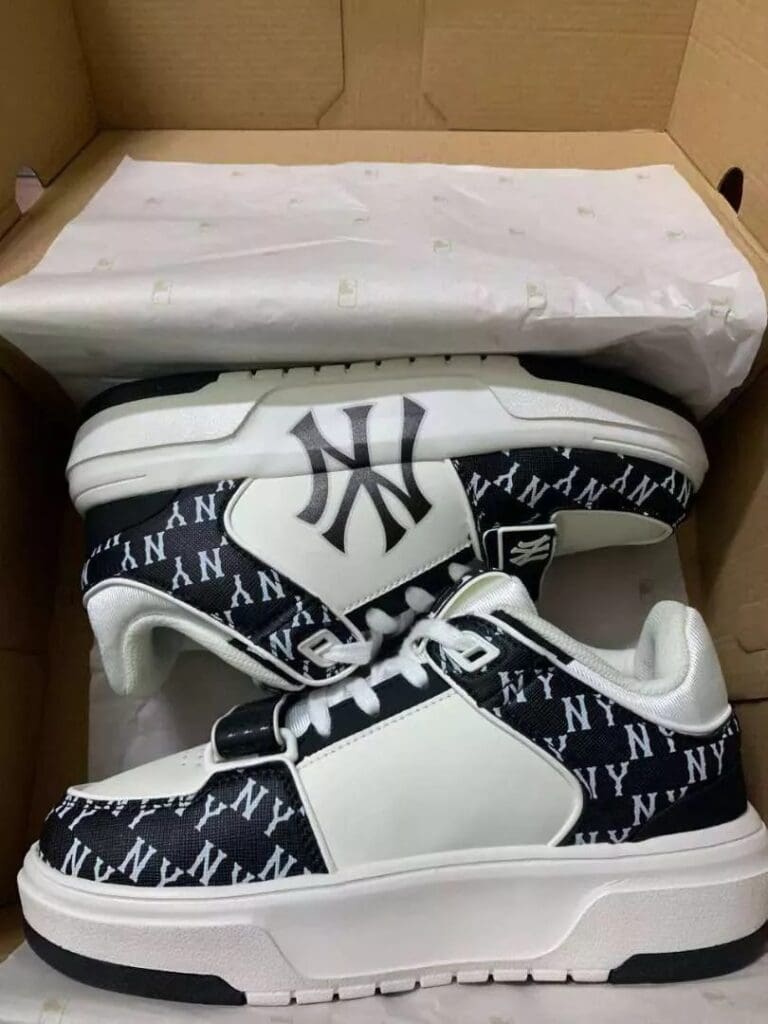 Giày Thể Thao MLB Chunky Liner Mid Đen NY Monogram – Sự phối hợp hoàn hảo của đen và trắng.